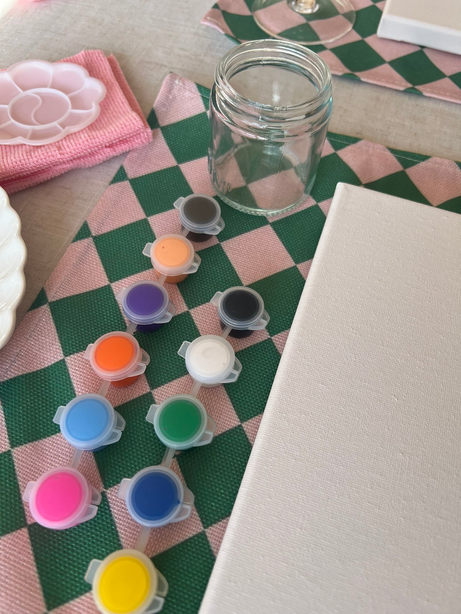 The Paint & Sip Box (for 2 guests) includes: